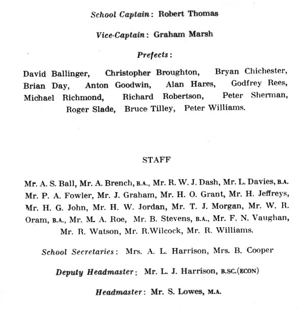 School Prefects and their 2 "commanding officers" in 1962/3